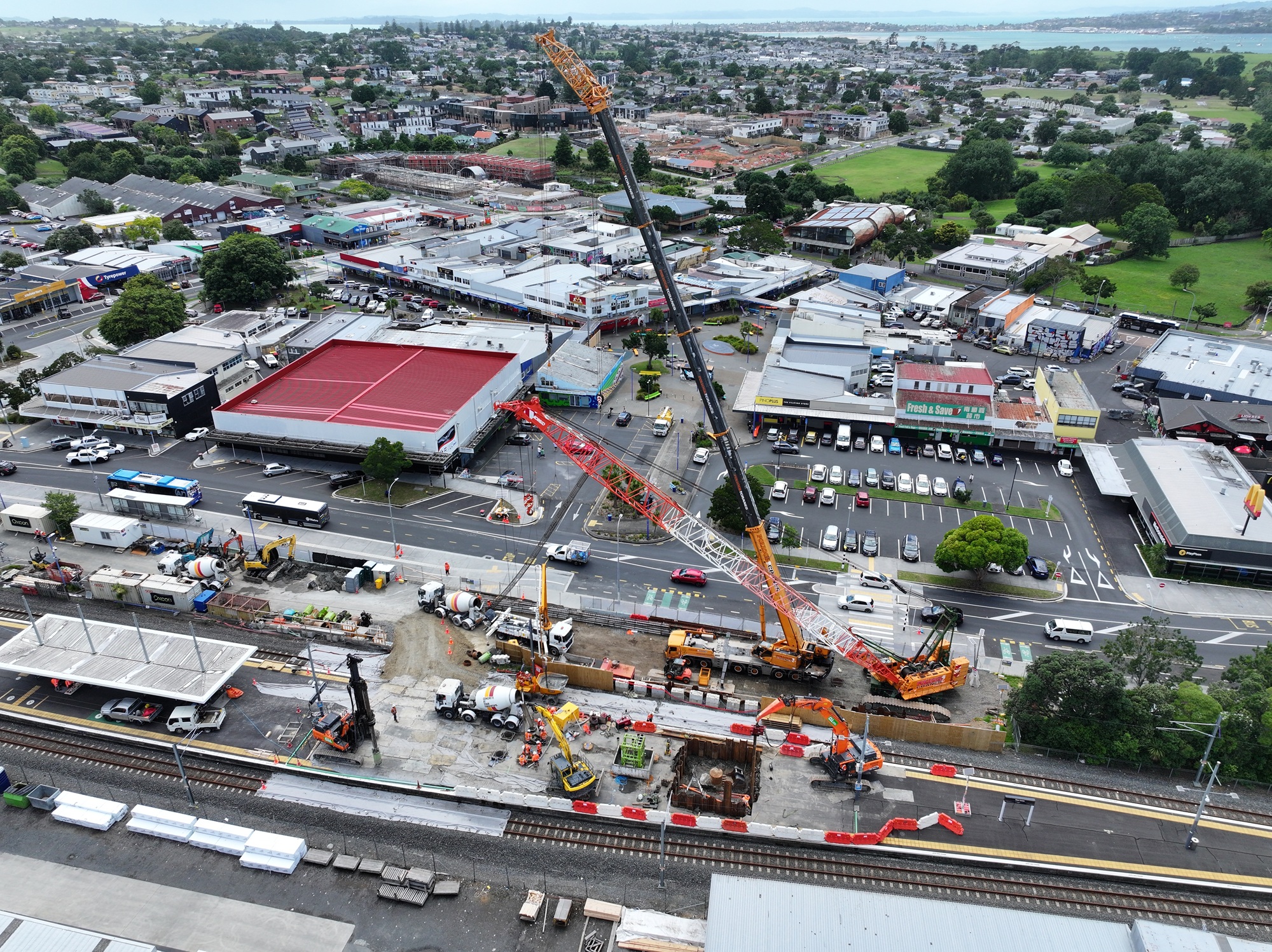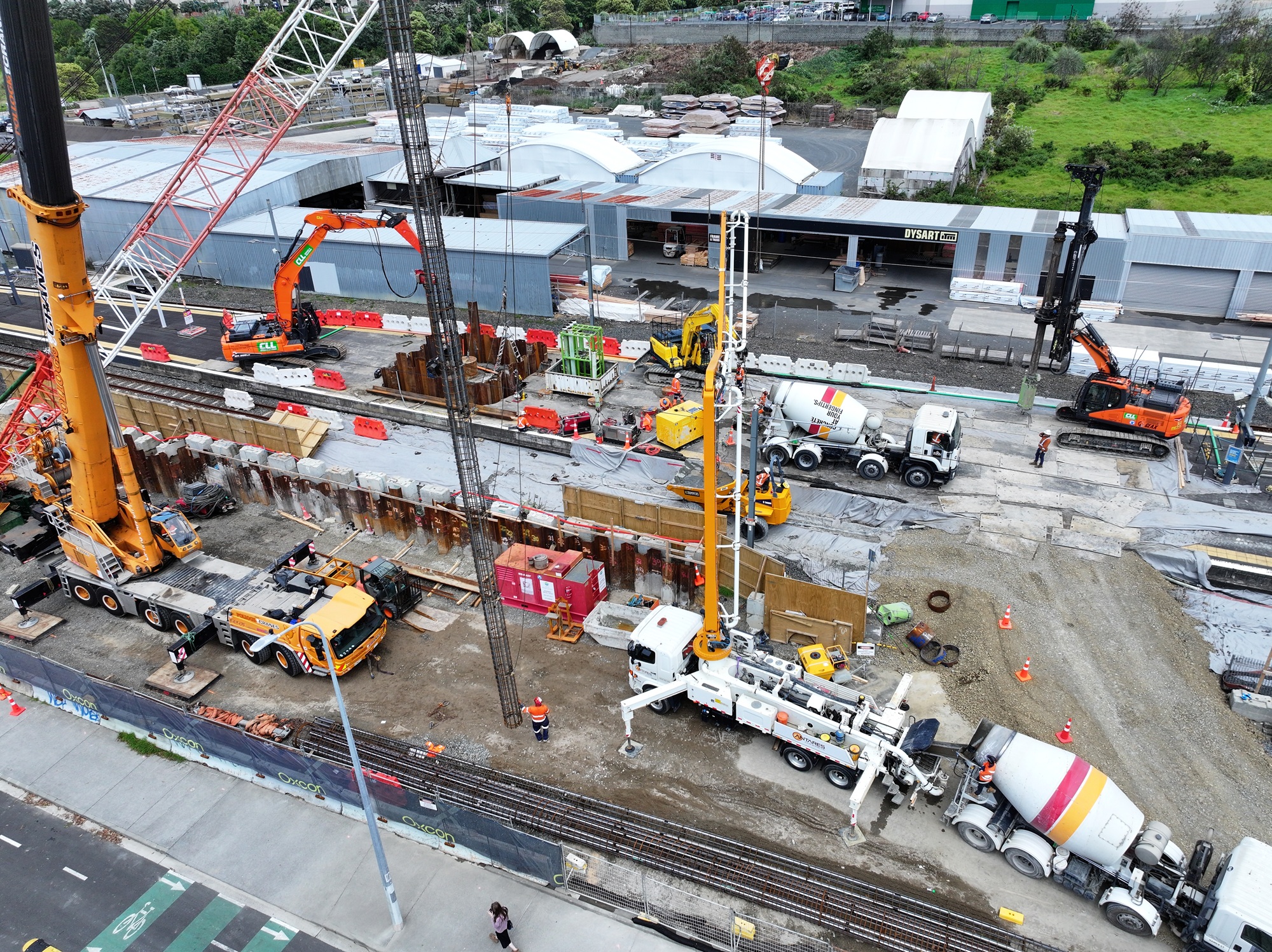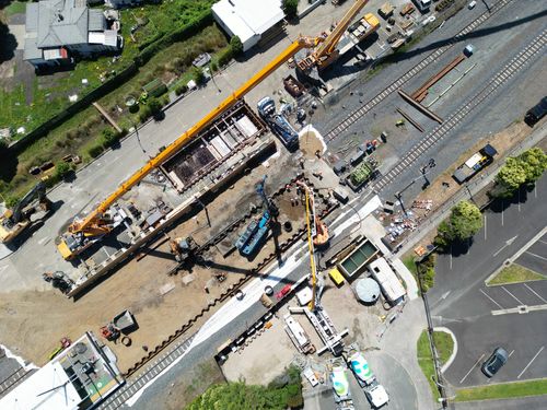Each bridge comprises new piled foundations, reinforced concrete substructures, and prefabricated steel superstructures installed within narrow working footprints beside live tracks and active station platforms. The works require intensive service coordination, night-time construction, and targeted block-of-line shutdowns to enable major lifts and high-risk activities. Oxcon is managing KiwiRail approvals, rail protection, permit pathways and temporary alterations to public access routes to ensure safe and continuous station operations throughout delivery.
